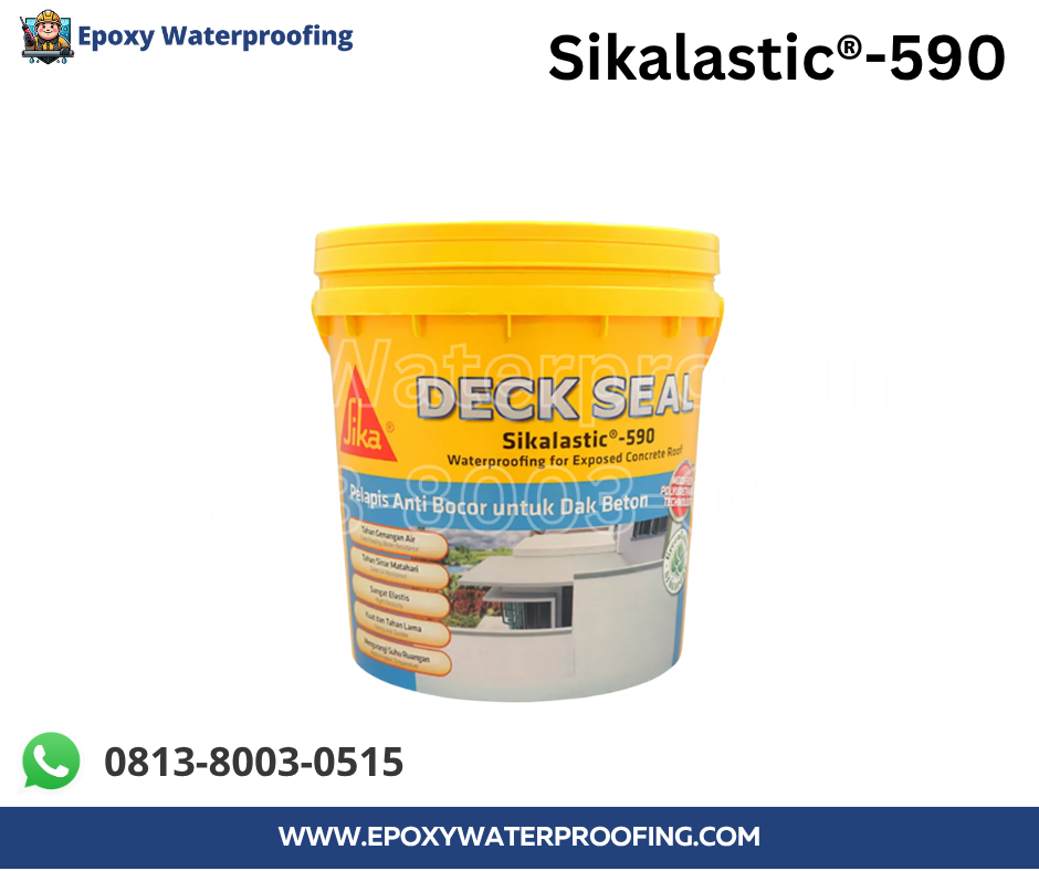 Waterproofing dua komponen berbasis semen dan polimer, cocok untuk dak beton baru maupun lama. Produk ini mudah diaplikasikan dan memberikan perlindungan maksimal terhadap tekanan air positif dan negatif, sehingga sangat efektif untuk mencegah rembesan dari permukaan atas maupun bawah - Sikalastic®-590